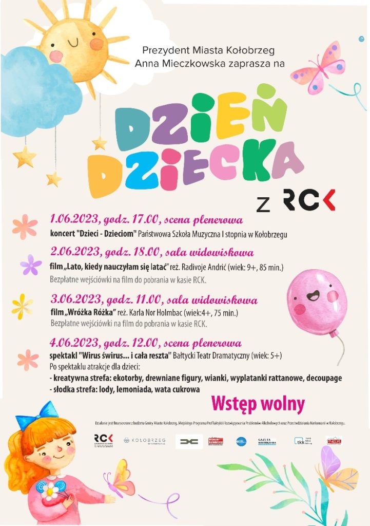 Prezydent Miasta Kołobrzeg Anna Mieczkowska oraz Regionalne Centrum Kultury w Kołobrzegu im. Zbigniewa Herberta zapraszają na Dzień Dziecka z RCK.