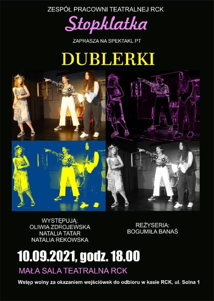 10 września, RCK, spektakl „Dublerki”, godz. 18, wstęp wolny (wejściówki) Post published:4 września 2021 Post category:Nie przegap Post comments:0 Komentarzy Szczegóły na plakacie. Read more articles Previous Post6 września, RCK, koncert Kołobrzeskiej Orkiestry Zdrojowej, godz. 19, wstęp wolny Następny wpis10 września, RCK, spektakl „RIO”, godz. 19, wstęp wolny (wejściówki) Dodaj komentarz Anuluj pisanie odpowiedziCommentEnter your name or username to comment Enter your email address to comment Enter your website URL (optional) Zapamiętaj moje dane w tej przeglądarce podczas pisania kolejnych komentarzy. Δ