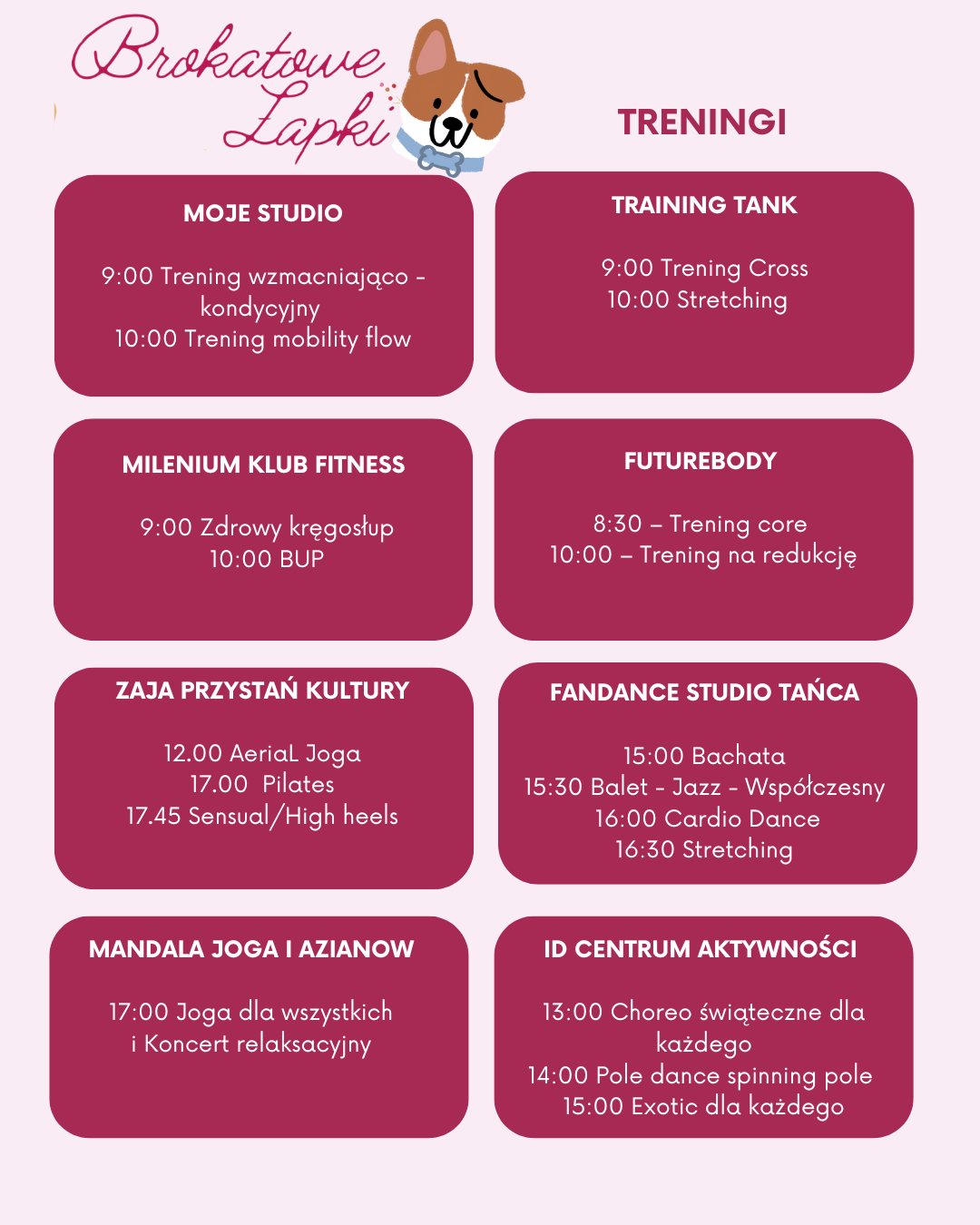 godz. 9 – 10 – trening wzmacniająco – kondycyjny z Aleksandrą Zadką,