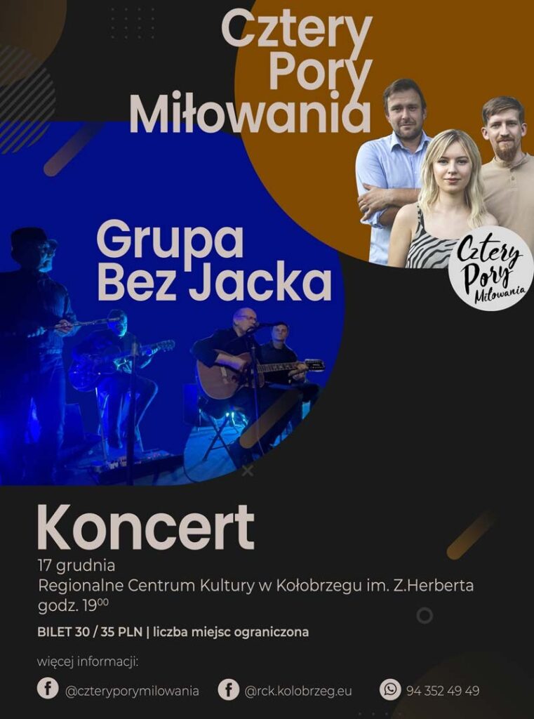 17 grudnia, RCK, koncert Cztery Pory Miłowania oraz Grupa Bez Jacka, godz. 19, bilet 35 zł
