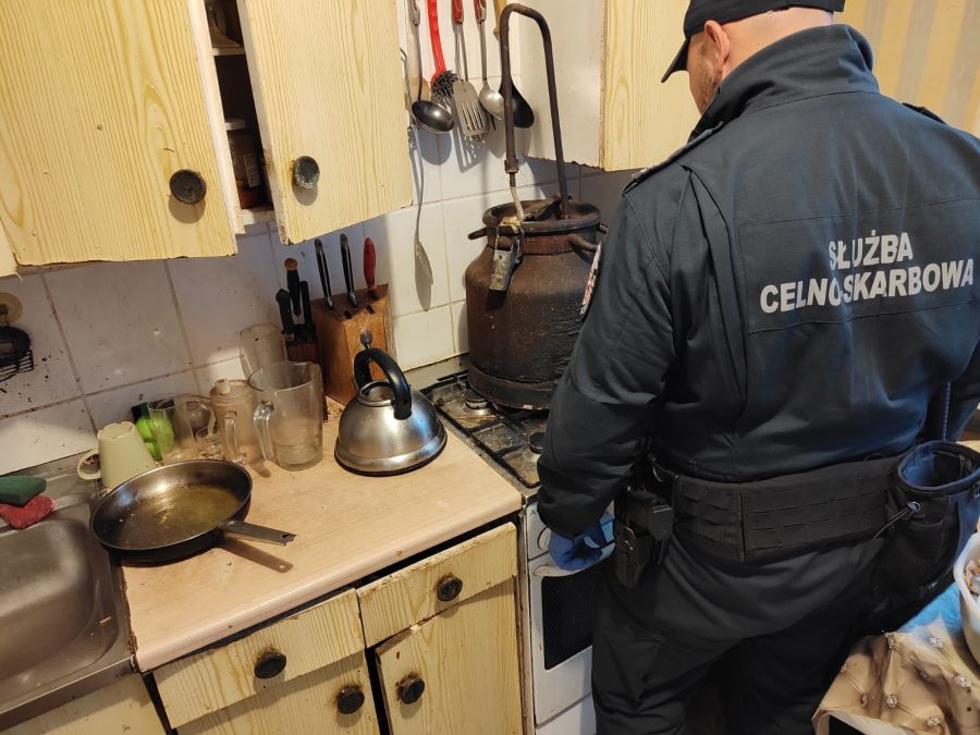 Czterech funkcjonariuszy Zachodniopomorskiego Urzędu Celno-Skarbowego wykryło bimbrownię na dziesiątym piętrze bloku w Kołobrzegu. Prowadził ją 75-letni emeryt.
