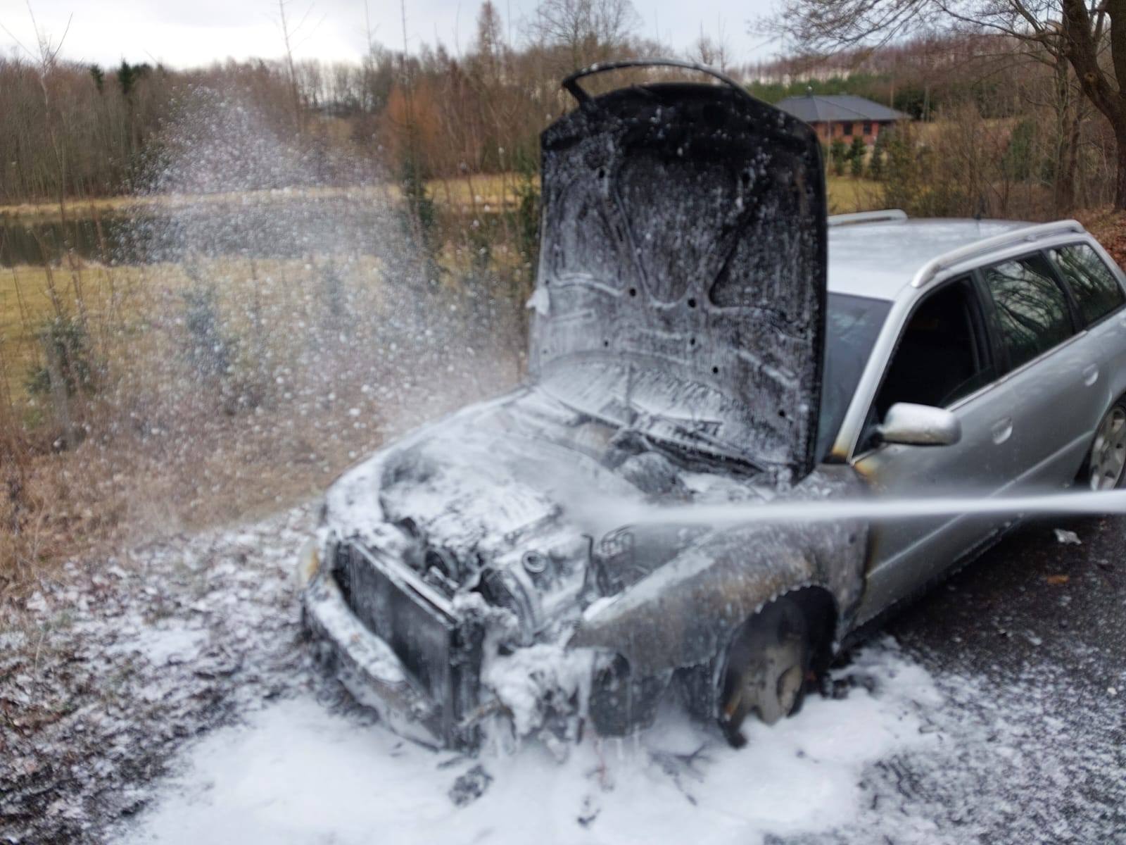 Na miejsce zdarzenia pojechały zastępy strażaków z OSP Dygowo i OSP Czernin oraz z Kołobrzegu. Jak się okazało, paliło się osobowe audi. Kierowca relacjonował, że ogień pojawił się podczas jazdy.