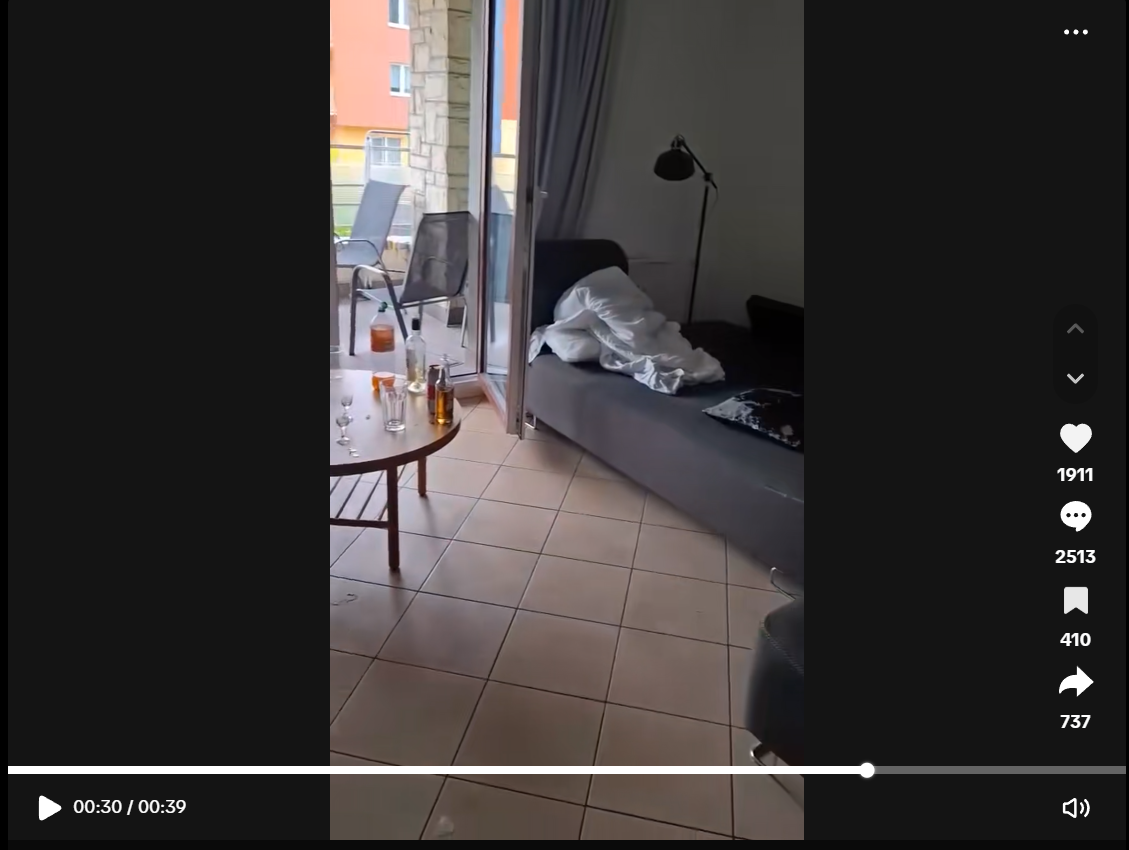 Właścicielka apartamentu w Kołobrzegu, Aleksandra Szymańska, opublikowała w mediach społecznościowych film pokazujący stan, w jakim goście pozostawili wynajmowane lokum. Nagranie szybko zdobyło popularność, wywołując gorącą dyskusję na temat standardów zachowania w miejscach noclegowych. Dziś przed południem pod filmem kołobrzeżanki widniało już ponad 2,5 tys. komentarzy, a temat podchwyciły ogólnopolskie media.
