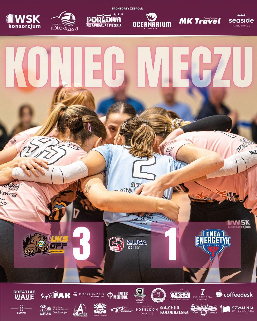 Drużyna UKS OPP Powiat Kołobrzeski wygrała 3:1 z Enea Energetykiem Poznań i umocniła się w czołówce 2 ligi.