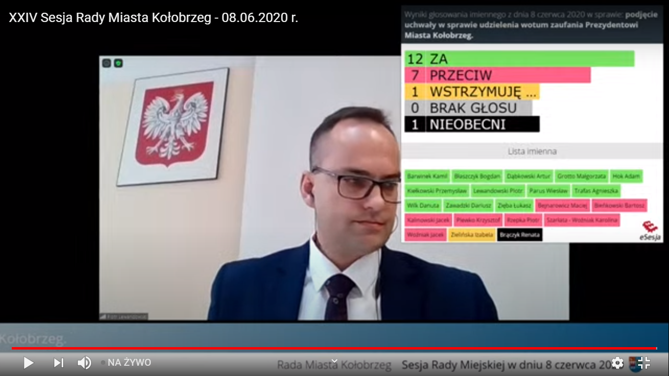Wynik głosowania nad udzieleniem prezydent Kołobrzegu wotum zaufania: