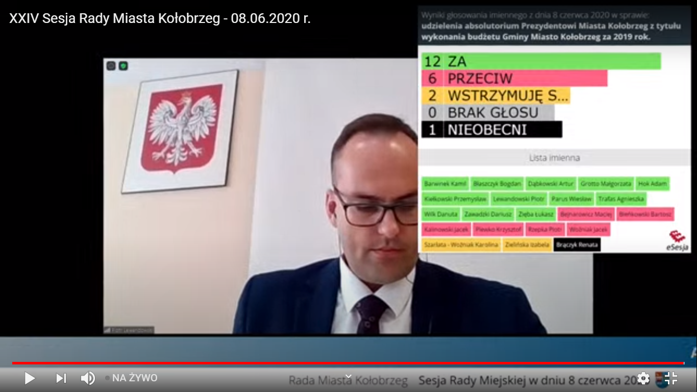 Wynik głosowania nad udzieleniem prezydent Kołobrzegu absolutorium: