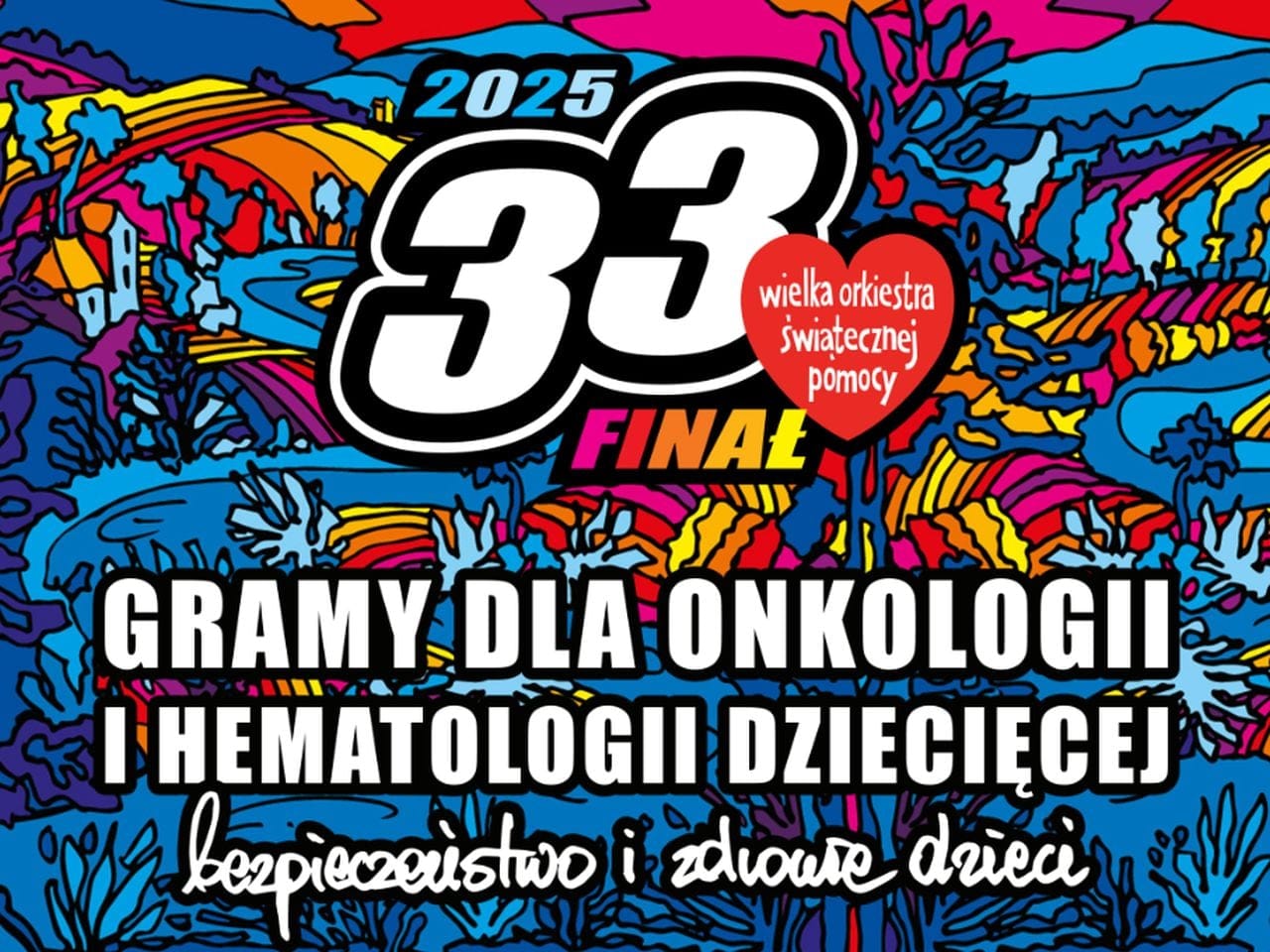26 stycznia 2025 r. Wielka Orkiestr Świątecznej Pomocy zagra po raz 33. Motywem przewodnim finału będzie bezpieczeństwo i zdrowie dzieci. Będziemy zbierać pieniądze dla onkologii i hematologii dziecięcej.
