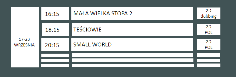 Od dziś w kinie Wybrzeże możemy oglądać najnowszy film Patryka Vegi „Small World”. Na afiszu pozostają „Mała Wielka Stopa 2” oraz „Teściowie”.
