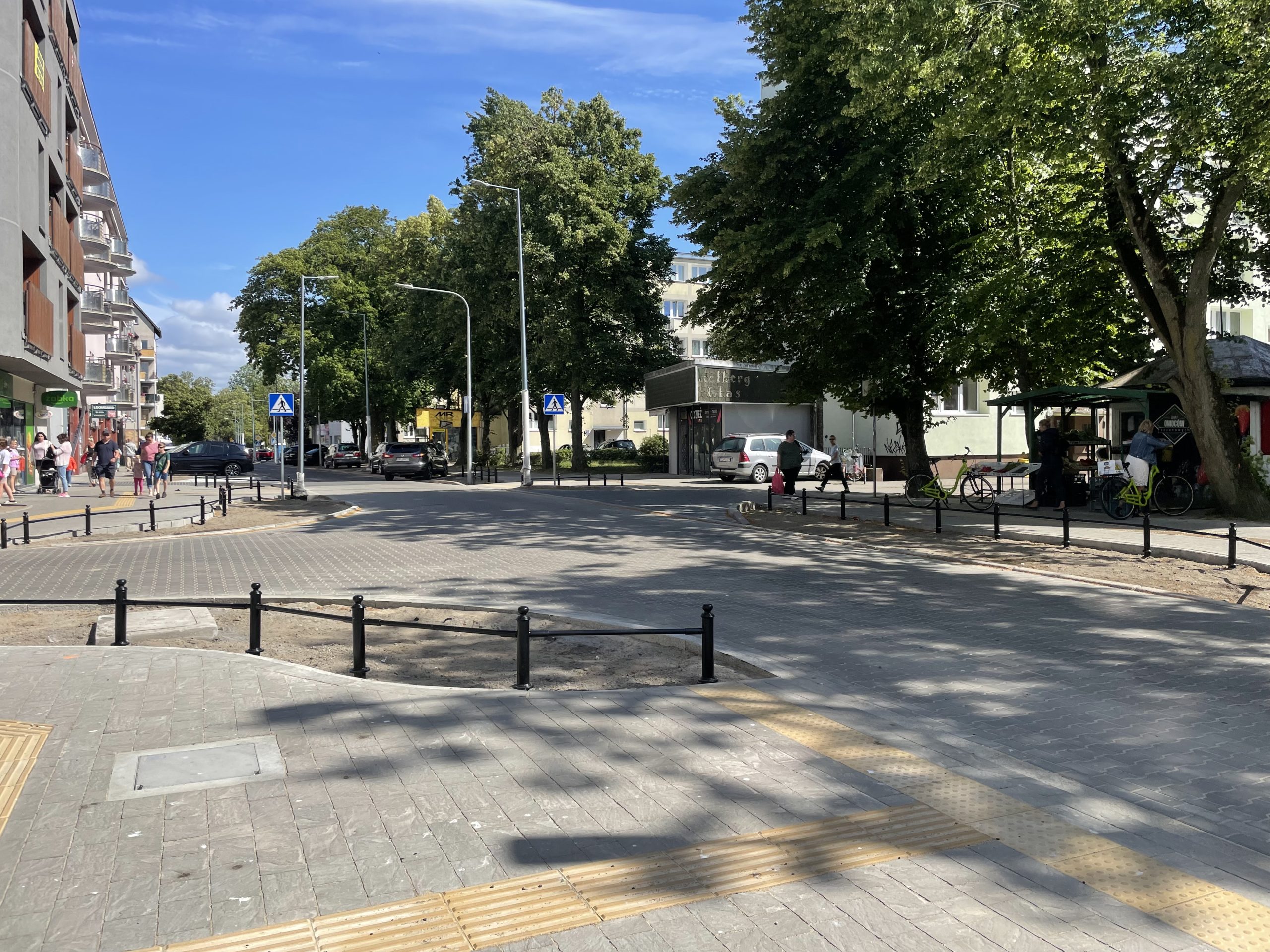 Obecnie prace przy jezdni, miejscach parkingowych i chodnikach są praktycznie zakończone. Trwa jeszcze uzupełnianie kostki brukowej i wymiana lamp. Wkrótce rozpoczną się nasadzenia roślin – miasto ogłosiło już w tym celu przetarg. Wiadomo, że do gruntu trafi m.in. 25 lip drobnolistnych, rośliny wieloletnie oraz kwiaty cebulowe.