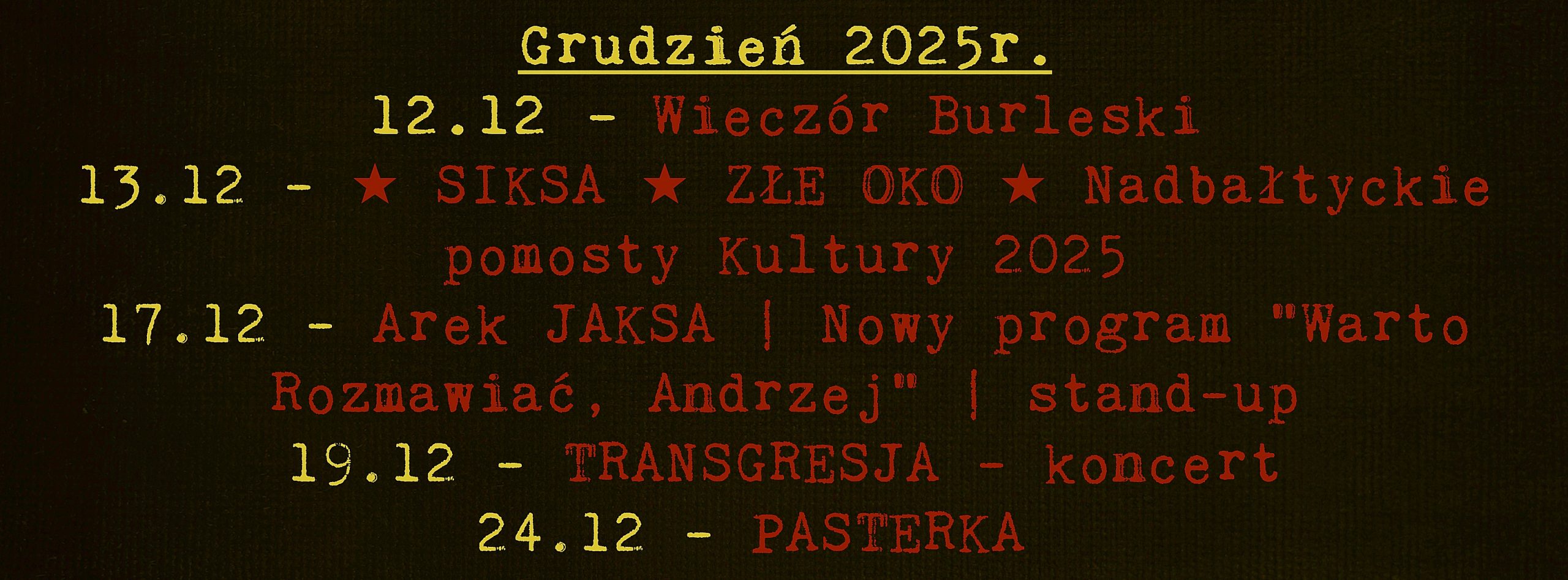 Grudzień zapowiada się niezwykle ciekawie w klubie muzycznym Centrala przy ul. Wąskiej 1. W programie m.in. wieczór Burleski, stand-up i koncerty. I oczywiście Pasterka – wydarzenie, które od wielu lat odbywa się w Wigilię. Tego wieczoru, czy raczej nocy, klub wypełnia się po brzegu między innymi gośćmi, którzy często wracają do rodzinnego Kołobrzegu na te kilka świątecznych dni. To zwykle miły czas spotkań dawno niewidzianych znajomych, rozmów i zabawy.