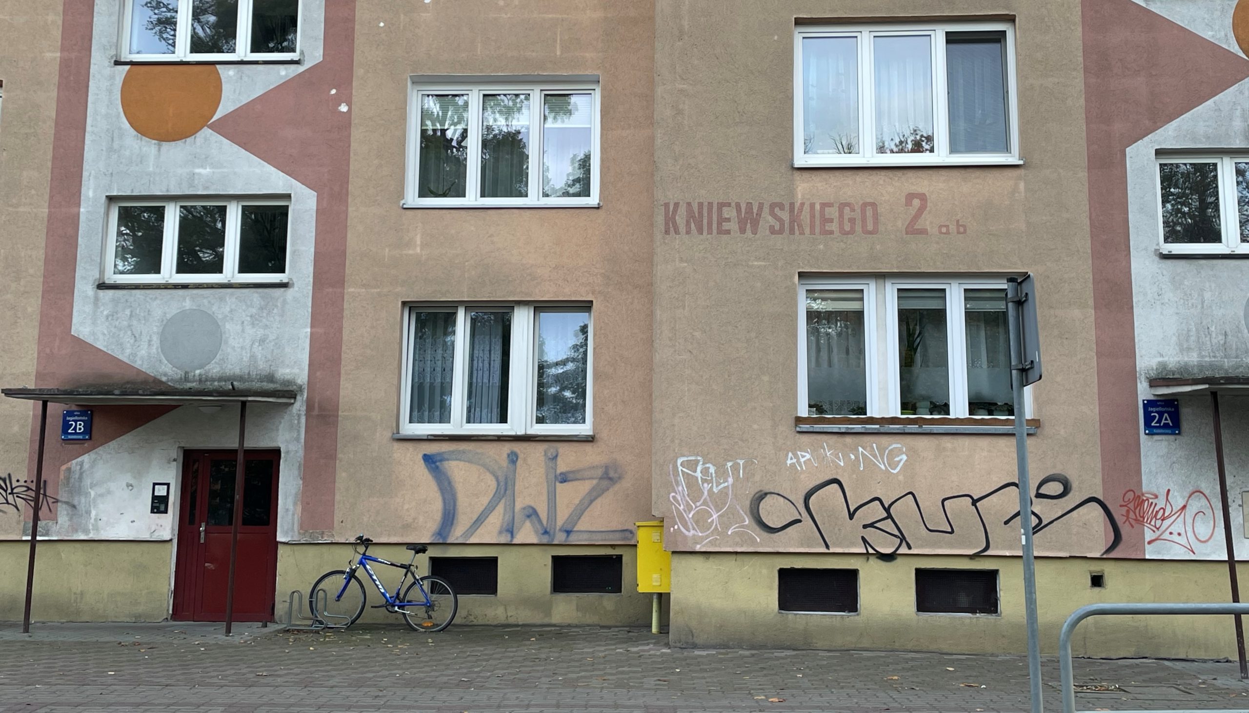 W Kołobrzegu jedną z ulic, która zmieniła nazwę była ul. Władysława Kniewskiego, która dziś nosi nazwę Jagiellońska. Nasz Czytelnik przysłał nam zdjęcie zrobione wczoraj (24 października 2025 r.), na którym widać, że budynku mieszkalnym naprzeciwko parkingu przy ul. Kolejowej wciąż widać napis Kniewskiego 2.