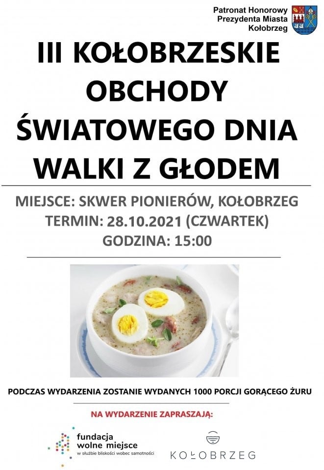 Dzień po rozpoczęciu przygotowań do VII edycji Wigilii dla Samotnych, po raz trzeci wolontariusze ugotują żur w ramach kołobrzeskich obchodów Światowego Dnia Walki z Głodem. Na Skwerze Pionierów od godz. 15 zostanie rozdanych tysiąc porcji gorącej zupy.