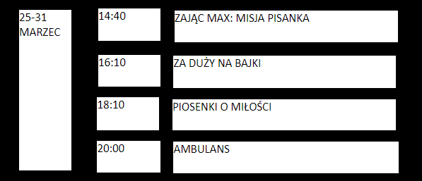 Jutro na afisz kina Wybrzeże wchodzą dwa nowe filmy: „Zając Max: Misia Pisanka” i polski dramat „Piosenki o miłości”. Wciąż przy Łopuskiego grany jest familijny film „Za duży na bajki” oraz amerykański thriller „Ambulans”.