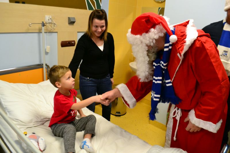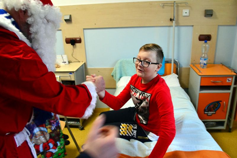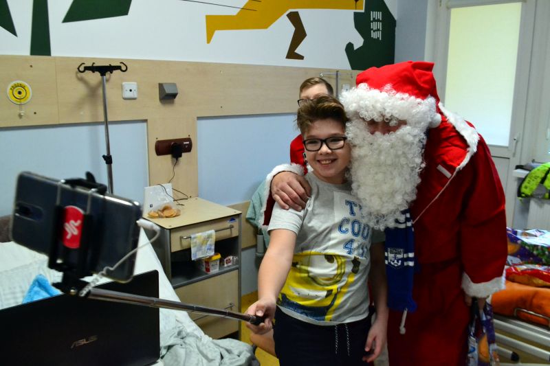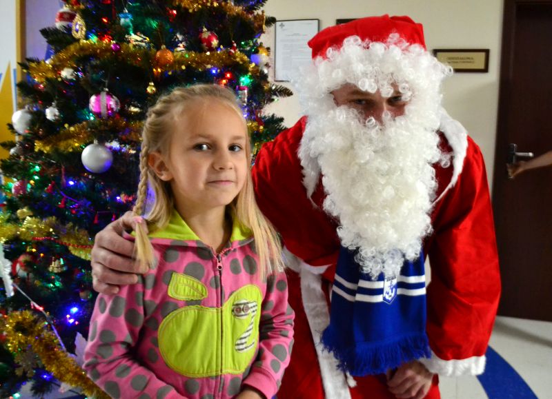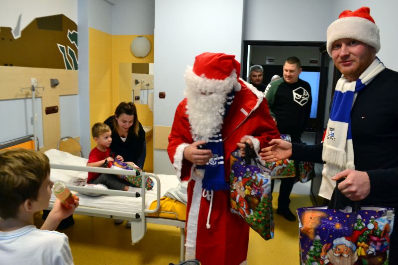 Mali pacjenci i ich rodzice nie ukrywali radości z wizyty biało-niebieskiego Mikołaja. Chętnie robili sobie zdjęcia z nietypowym gościem. Jak zapowiadają fani Kotwicy za rok kolejna edycja akcji.