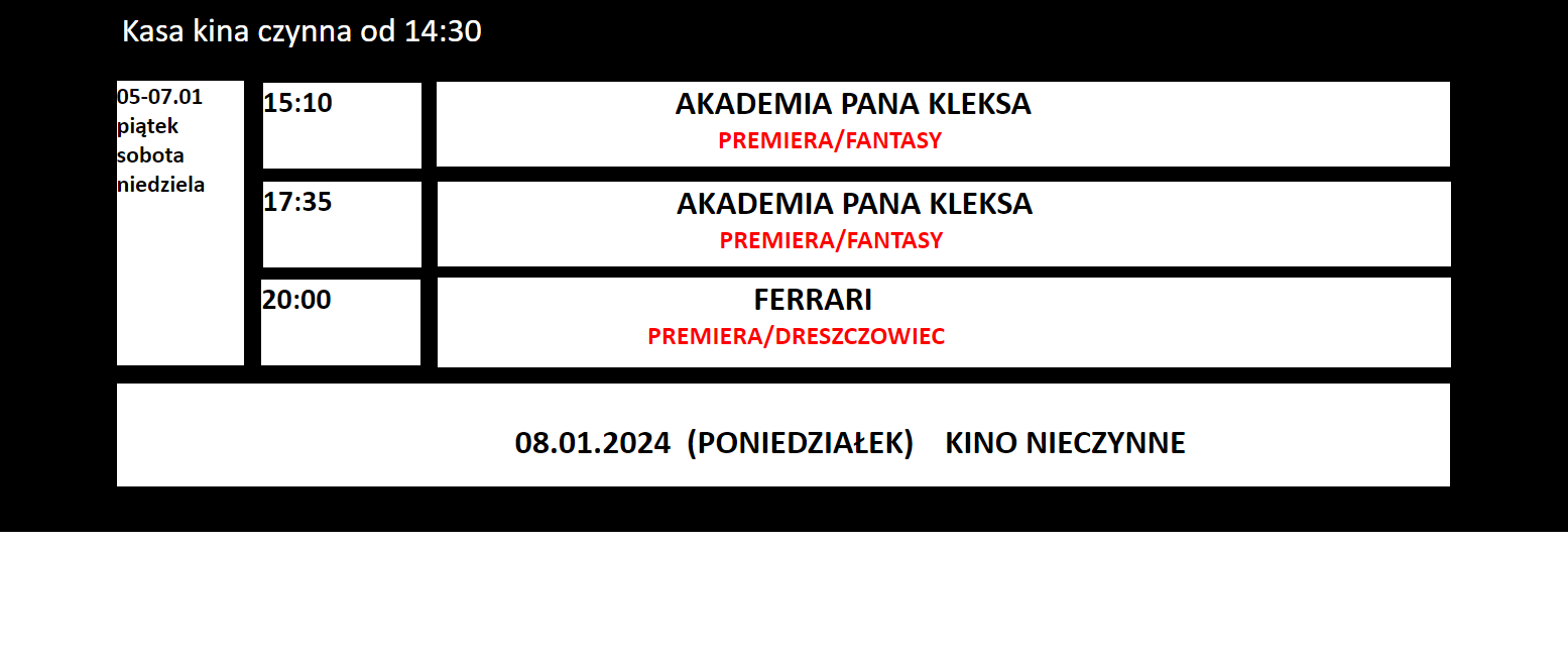 Premiera filmu 5 stycznia 2024 r. Tego samego dnia film zacznie grać też m.in. kino Wybrzeże. Bilet normalny kosztuje 21 zł.