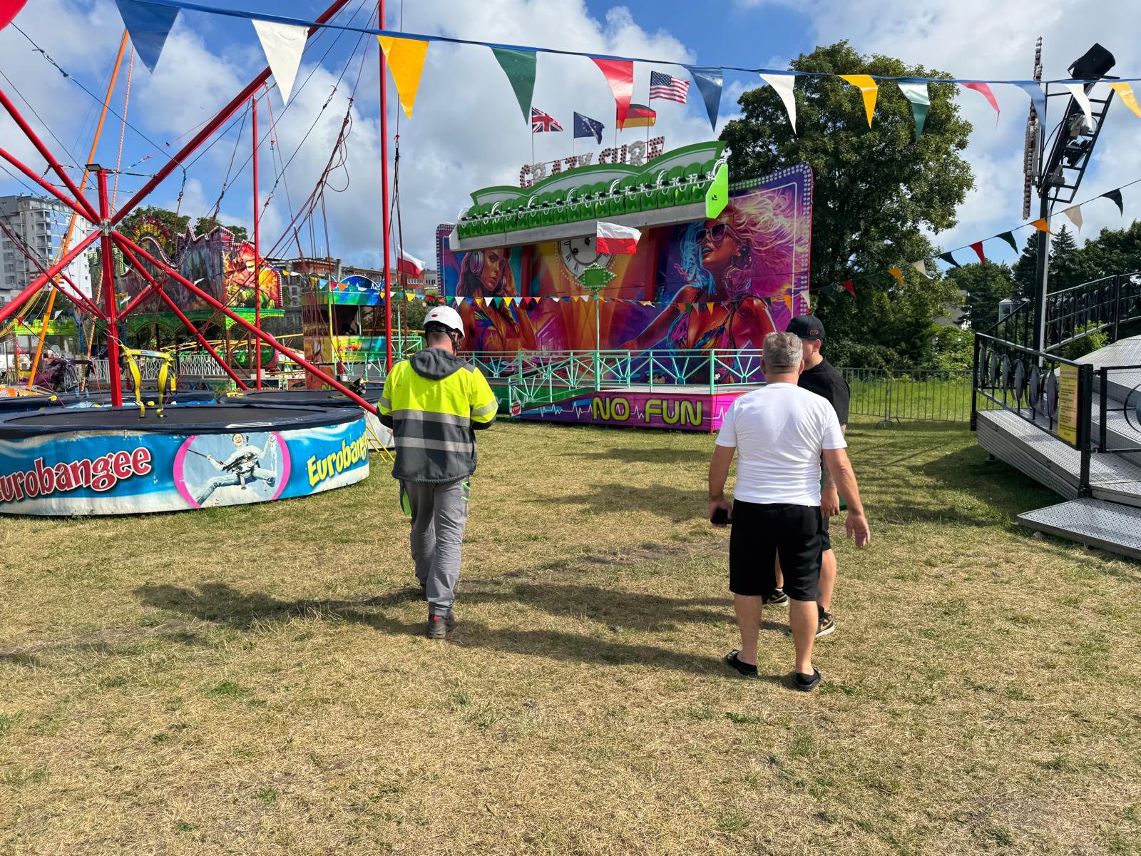 Wspólne działania dzielnicowych z Komendy Powiatowej Policji w Kołobrzegu, Straży Miejskiej oraz pracownika nadzoru technicznego miały na celu sprawdzenie bezpieczeństwa sezonowych atrakcji rozrywkowych na terenie gminy Kołobrzeg.