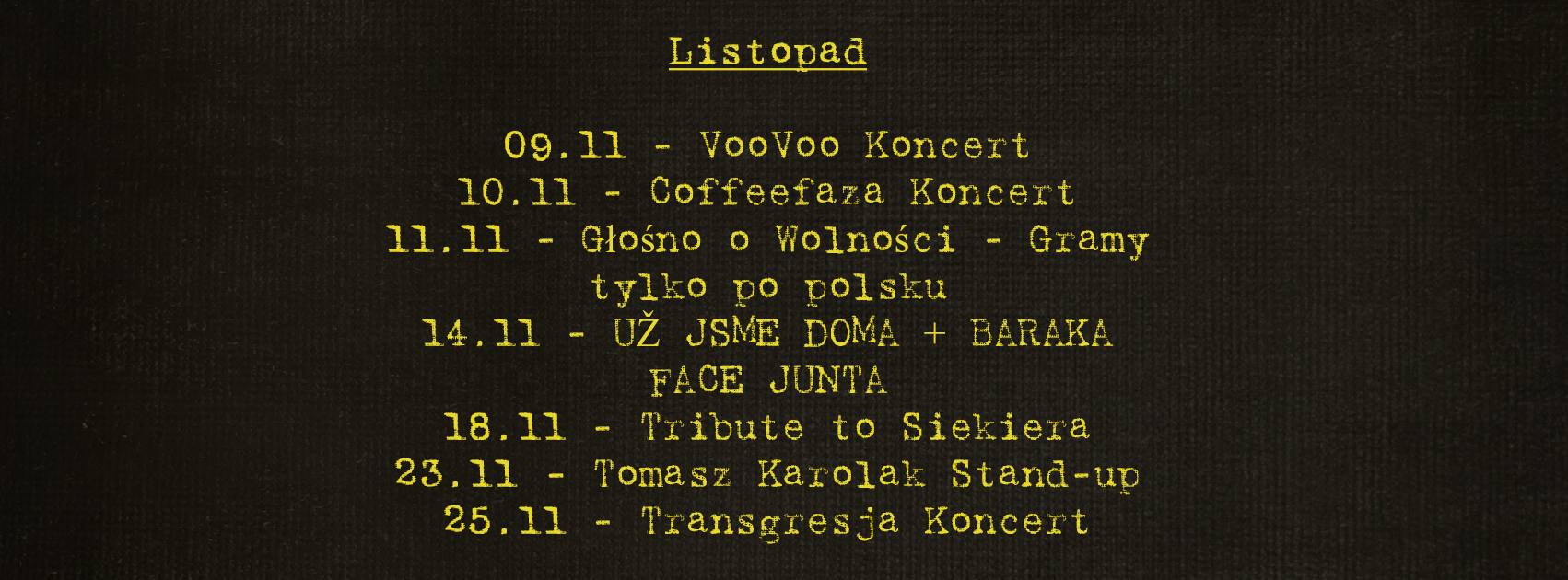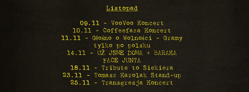 Aż siedem wydarzeń przygotował klub Centrala. Na scenie przy Wąskiej 1 zagra VOO VOO (9.11) czeska legenda sceny alternatywnej (14.11), w programie stand-upowym wystąpi znany aktor Tomasz Karolak (23.11) – żeby wymienić tylko trzy z nich.