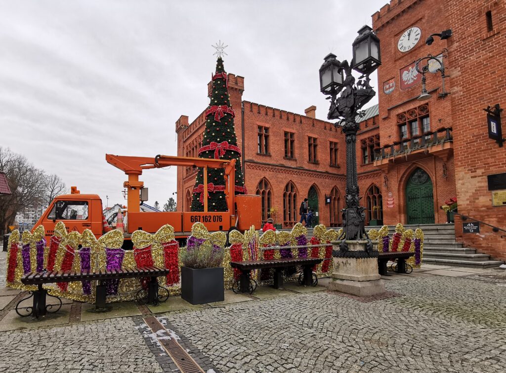 Dziś na placu Ratuszowym postawiono miejską choinkę. Jutro zostanie zapalonych kilka tysięcy światełek. Przy wejściu do Galerii Sztuki Współczesnej w ratuszu, tradycyjnie już ustawiono bijący co roku rekordy popularności gigantyczny fotel, na którym już dziś robiono sobie pamiątkowe zdjęcia.