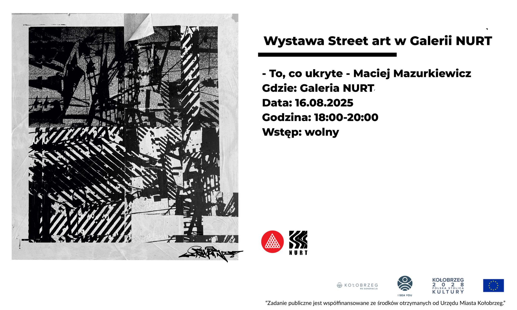 Fundacja Kołobrzeski Nurt zaprasza 16 sierpnia na wystawę „To, co ukryte” – najnowszej prezentacji twórczości Macieja Mazurkiewicza, koszalińskiego artysty związanego od ponad dwóch dekad z kulturą street art i graffiti. Start o godz. 18 w galerii Nurt przy róg ul. Mazowiecka/świętego Macieja