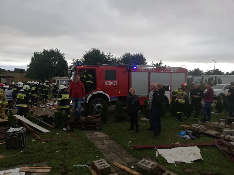 Na miejscu pracuje dziewięć zastępów straży pożarnej. Szkody materialne w wyniku trąby powietrznej powstały również w innych miejscach Ustronia Morskiego. Aktualnie trwa szacowanie start i usuwanie zniszczeń.