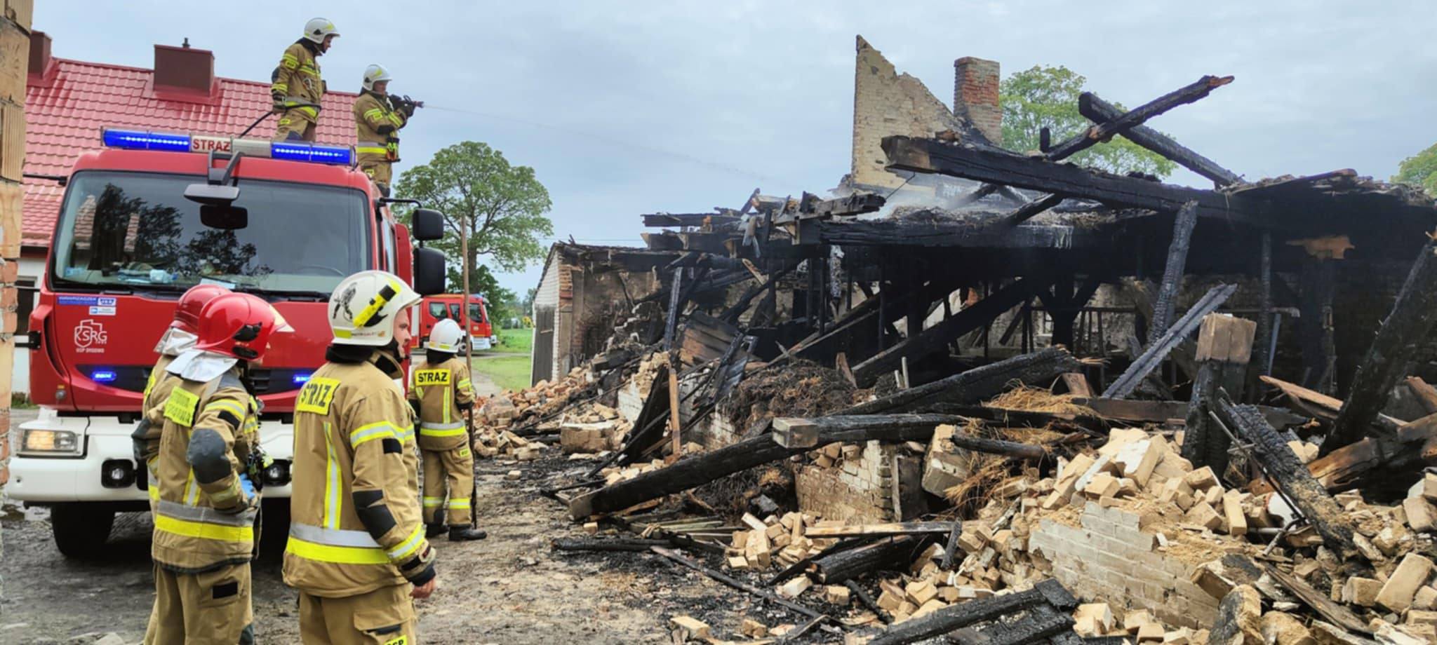 Nocny pożar w gm. Dygowo. Na ratunek wysłano strażaków z całego pow. kołobrzeskiego