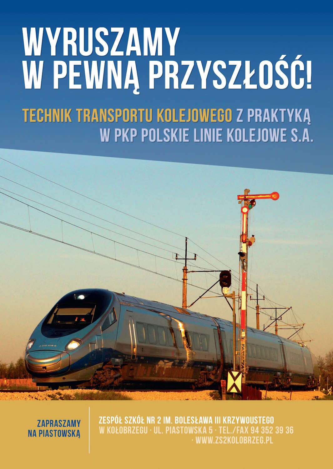 W roku szkolnym 2026/2027 w Zespole Szkół nr 2 im. Bolesława III Krzywoustego w Kołobrzegu planowane jest uruchomienie nowego kierunku kształcenia: technik transportu kolejowego.
