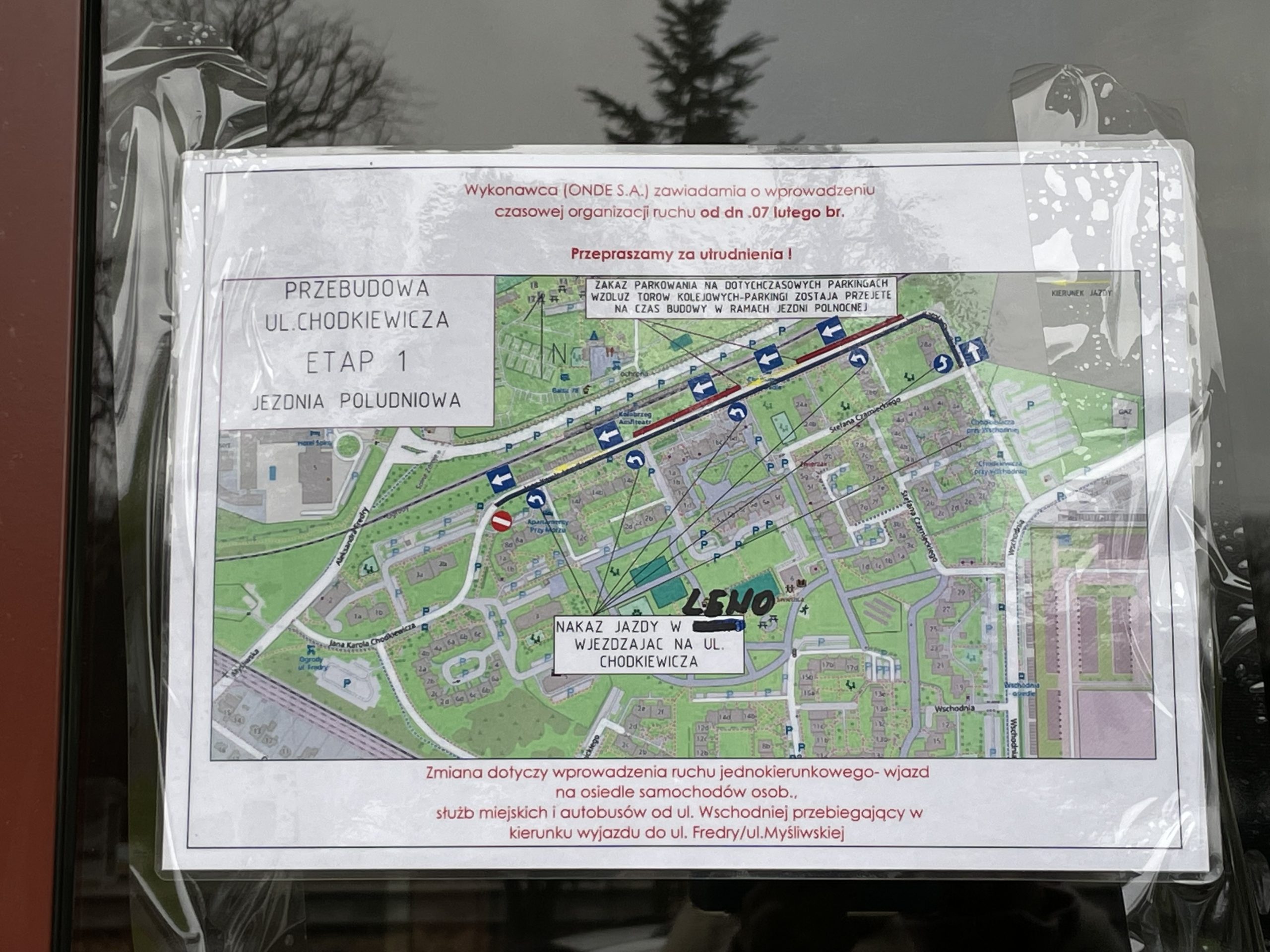 Dziś w bibliotece na Ogrodach w sprawie remontu ulicy Chodkiewicza odbyło się spotkanie mieszkańców osiedla z inwestorem. Na drzwiach klatek schodowych w okolicznych blokach rozklejono zawiadomienie i mapki informujące o zmianach organizacji ruchu. Od jutra będziemy tędy jeździć inaczej, ponieważ rozpoczyna się remont.