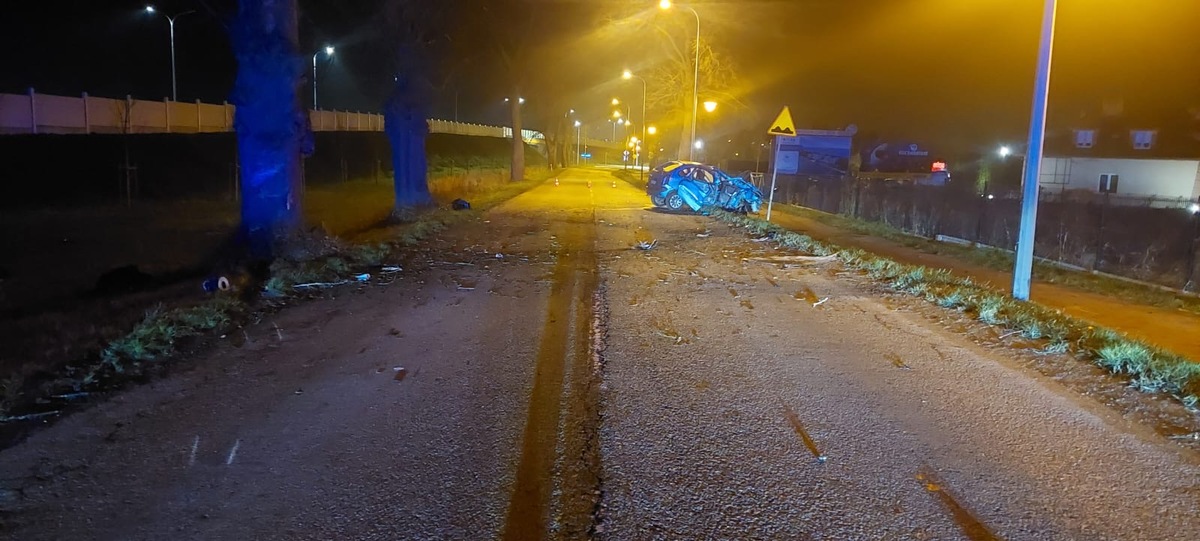 Do zdarzenia doszło 26.11.2024 r. o godz. 19:30 przy ulicy Krzywoustego. Wstępne ustalenia policjantów pracujących na miejscu zdarzenia wskazują, że 19-letni kierujący samochodem osobowym marki Citroen Picasso jadąc od strony Niekanina w kierunku centrum miasta, za łukiem drogi nie dostosował prędkości do warunków panujących na drodze, stracił panowanie nad pojazdem, wpadł w poślizg w wyniku którego pojazd obróciło i siłą pędu prawą stroną pojazdu uderzył w znajdujące się na poboczu drzewo. Po uderzeniu w drzewo pojazd obrócił się i zatrzymał na prawym pasie ruchu przodem w kierunku pobocza. Kierujący osobówką, mieszkaniec pow. kołobrzeskiego, był trzeźwy.