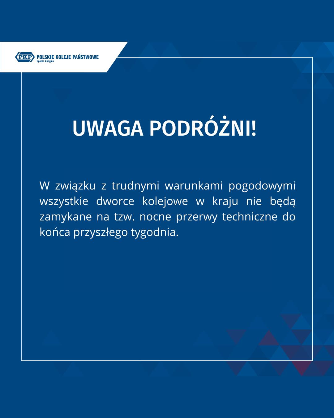 Przewoźnik o pozostawieniu dworców otwartych przez 24 godziny na dobę poinformował w mediach społecznościowych zamieszczając grafikę: