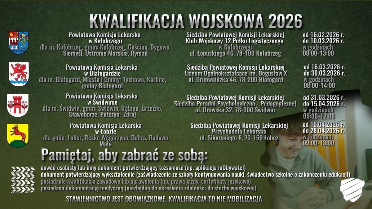 Od 2 lutego do 30 kwietnia 2026 roku na terenie całej Polski zostanie przeprowadzona kwalifikacja wojskowa. Obowiązek stawienia się dotyczy kilku grup osobowych.