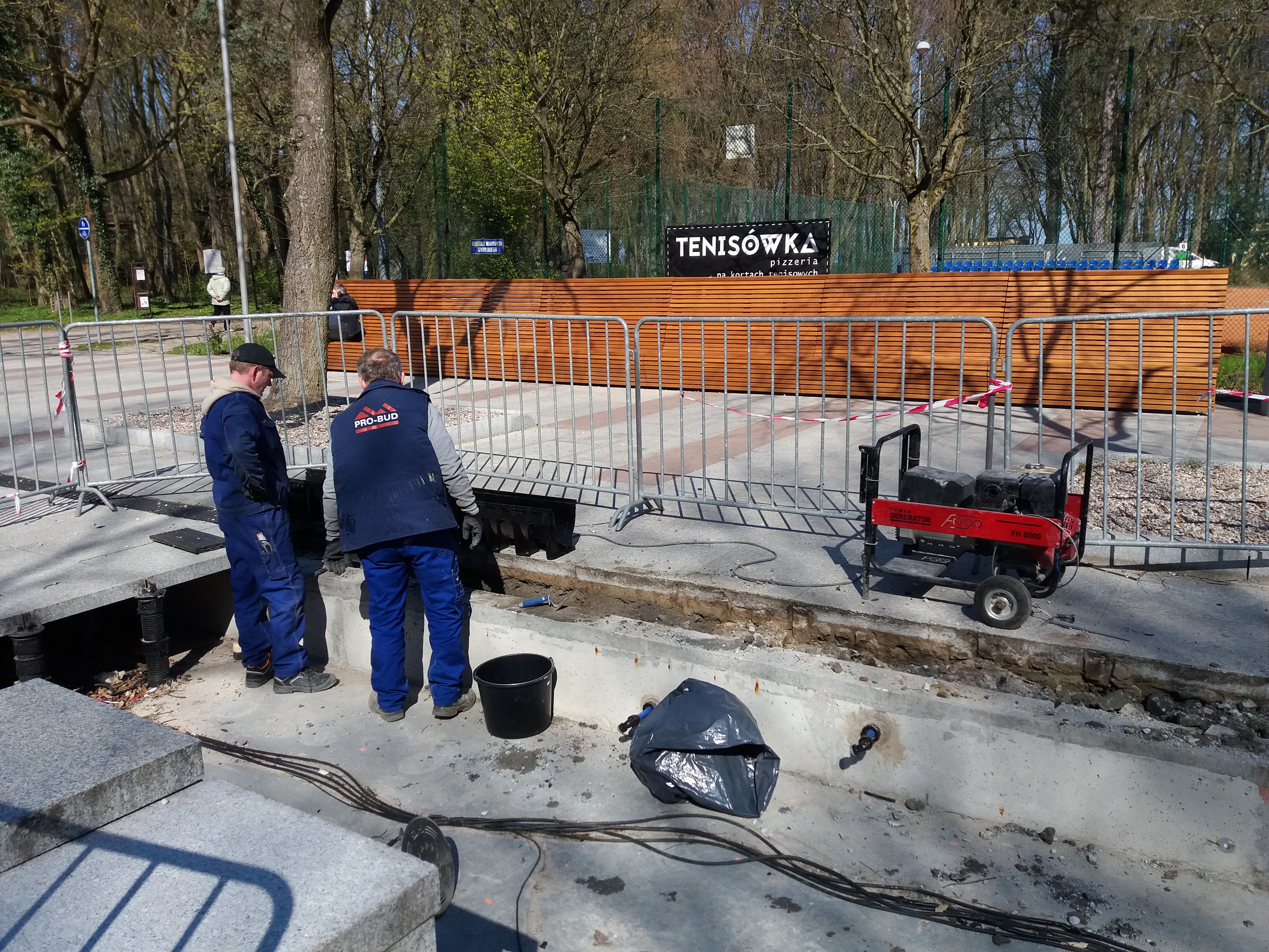 Ruszyła naprawa fontanny przy kortach tenisowych. Pierwsze zniszczenia powstały w styczniu, kolejne na początku marca. Przypomnijmy, że na tzw. mokry chodnik wjechały samochody i płyty pod ich ciężarem zapadły się, a część popękała. W obu przypadkach kierowcy sami zgłosili się do Straży Miejskiej i zadeklarowali, że pokryją koszty naprawy.