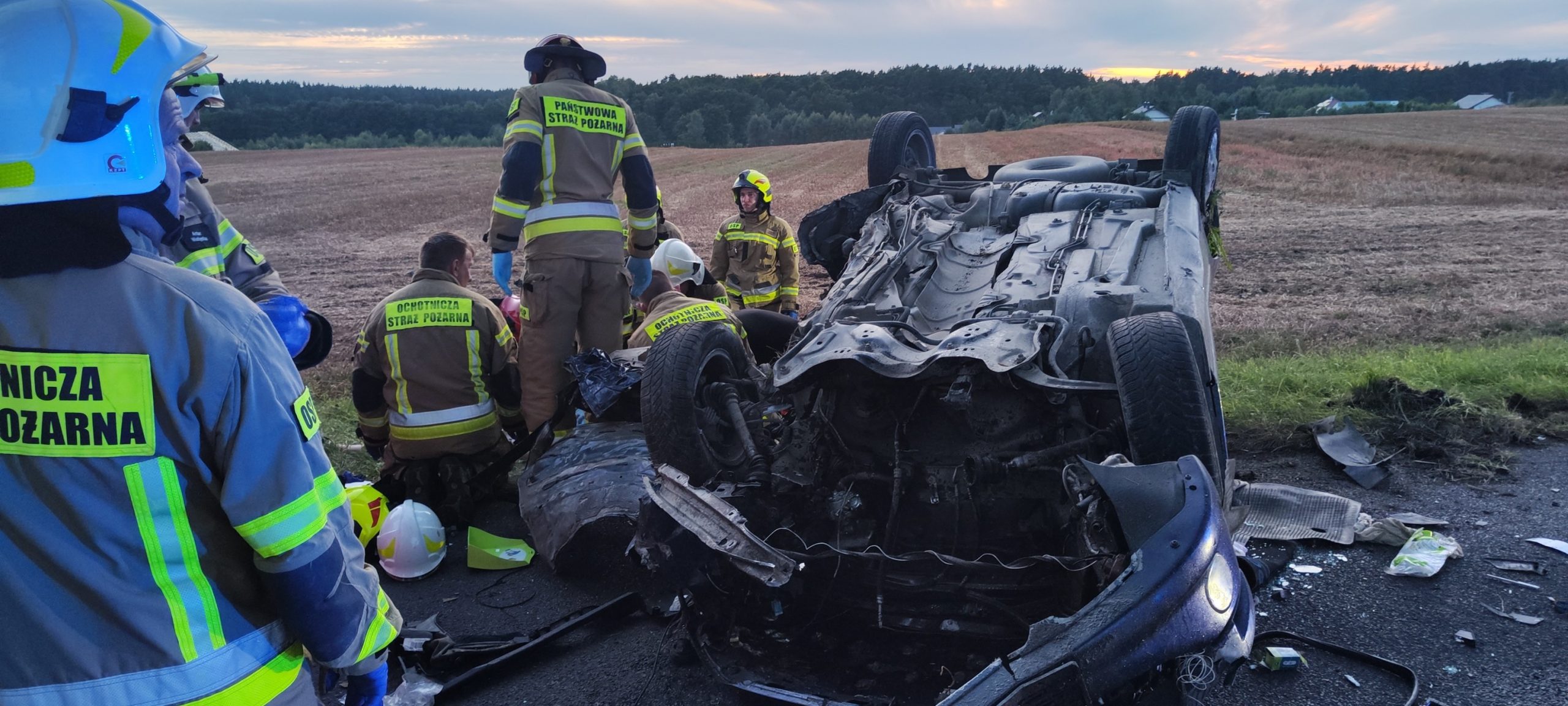 Na drodze pomiędzy miejscowościami Charzyno i Mącznik samochód osobowy z niewyjaśnionych przyczyn zjechał z drogi i uderzył w drzewo, a następnie dachował. Służby zostały zaalarmowane o wypadku we wtorek (26.08) około godziny 20.