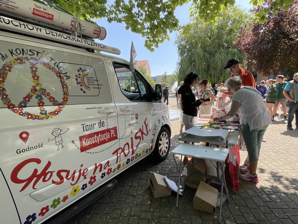 Dziś w południe na Skwerze Pionierów zaparkował tour bus obywatelskiej akcji Tour de Konstytucja. To trzeci rok z rzędu, kiedy tour bus rusza w kraj z akcją edukacyjno-informującą, która ma na celu – jak mówią jej organizatorzy – przybliżanie istoty praworządności i zasad demokracji. W tym roku te pojęcia dodatkowo stawiane są w kontekście nadchodzących wyborów parlamentarnych.