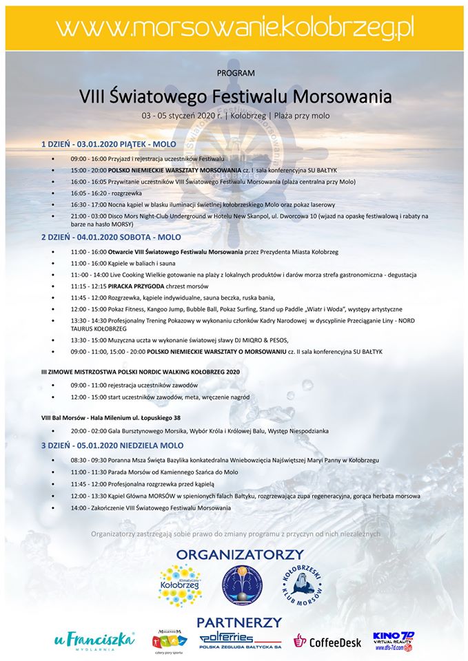 Do jutra morsy z całego kraju i zagranicy zażywać będą wspólnych kąpieli w zimnym o tej porze roku Bałtyku. Ale pogoda nie rozpieszcza nawet tych zaprawionych w obcowaniu z niskimi temperaturami pasjonatów – na zmianę padający deszcz i śnieg oraz porywiste podmuchy wiatru to z pewnością nie jest to, co morsy lubią najbardziej.