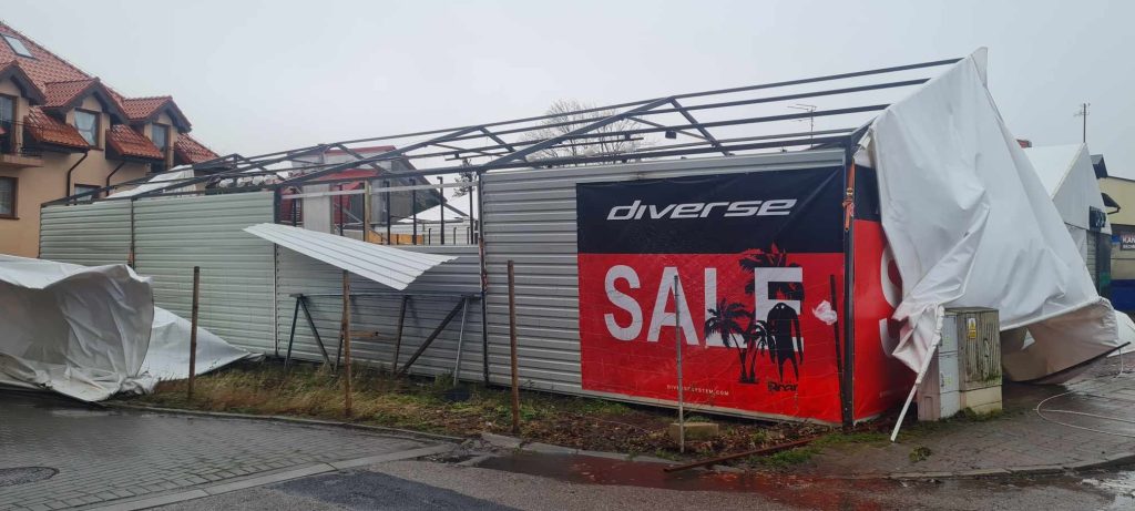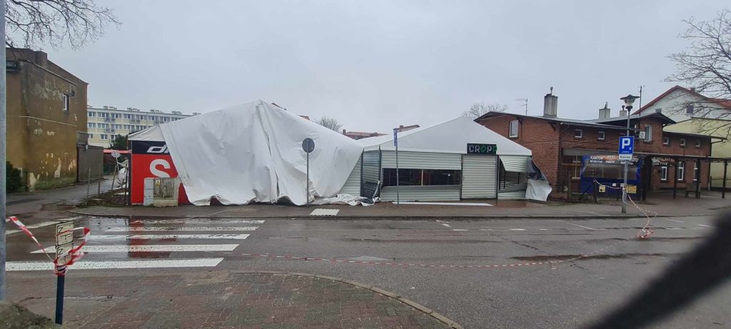 W skutek silnego wiatru zniszczone zostały dwa pawilony handlowe w Ustroniu Morskim. Lekkie konstrukcje przegrały z nawałnicą. Naporu wiatru nie wytrzymał też dach budynku gospodarczego w Miechęcinie. Strażacy z całego powiatu kołobrzeskiego mają ręce pełne roboty w związku z szalejącym cyklonem Zoltan.