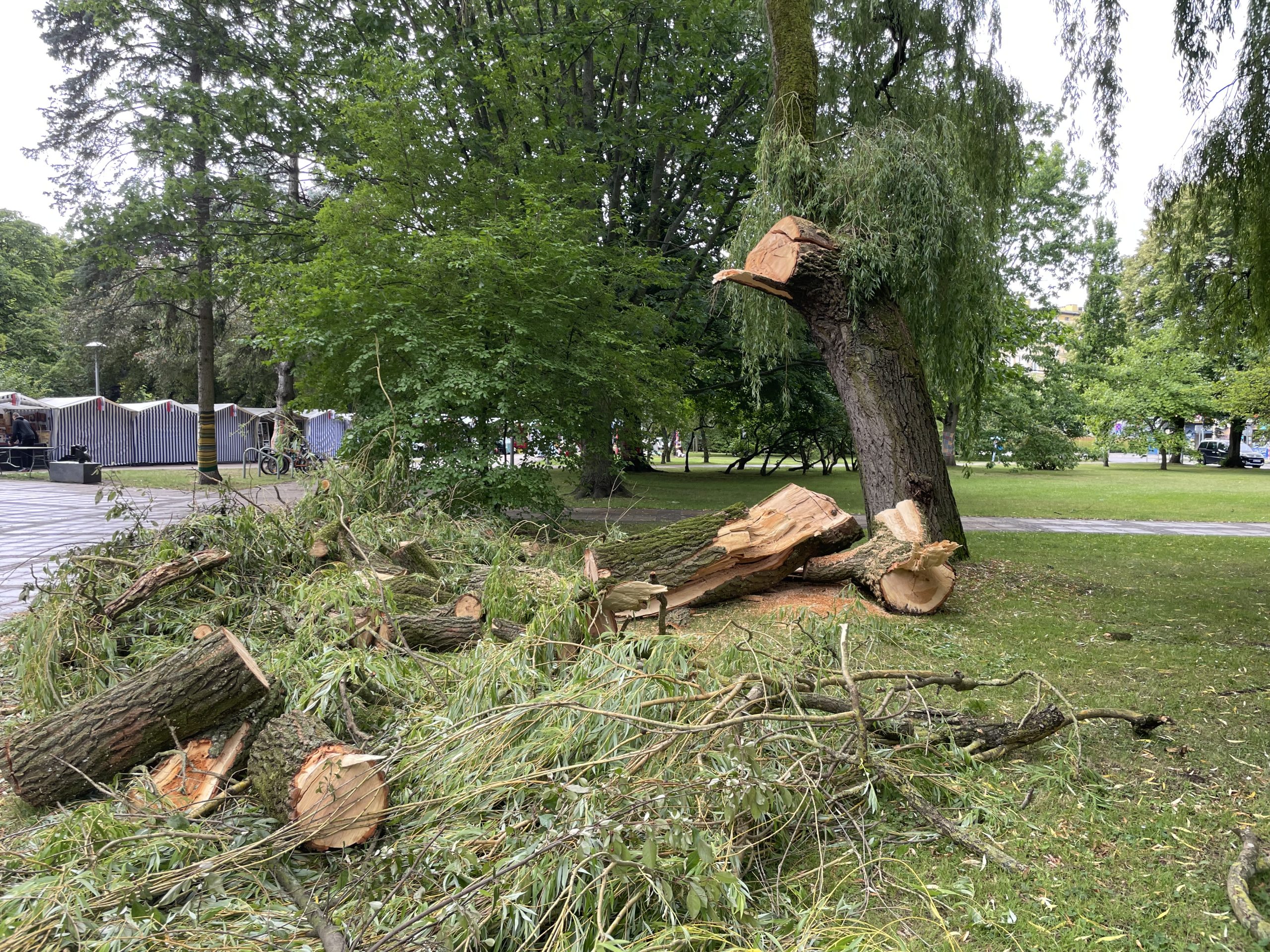 You are currently viewing Wierzba nie wytrzymała burzy – konar spadł tuż przy alejce