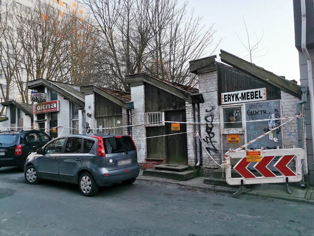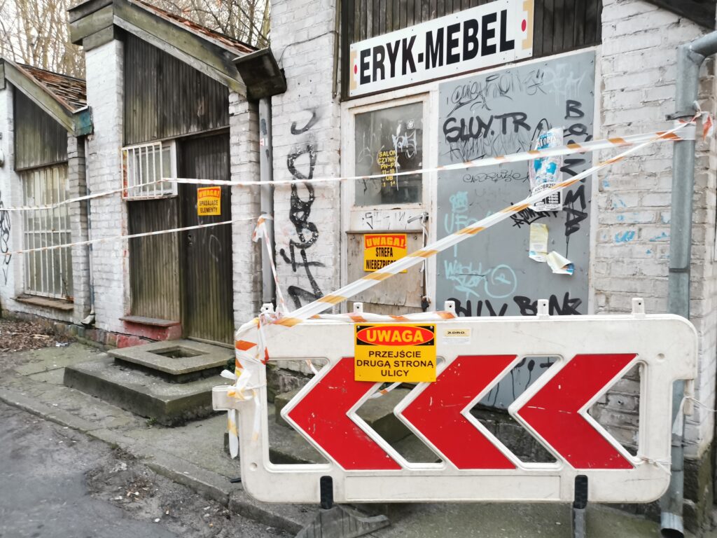 Ruiny, w których kiedyś znajdowały się sklepy i kawiarnia, w samym centrum miasta straszą już od wielu lat. Niedawno ogrodzono je taśmami. Powieszono tabliczki z ostrzeżeniem przed spadającymi elementami i nakazano pieszym przejście drugą stroną ulicy.