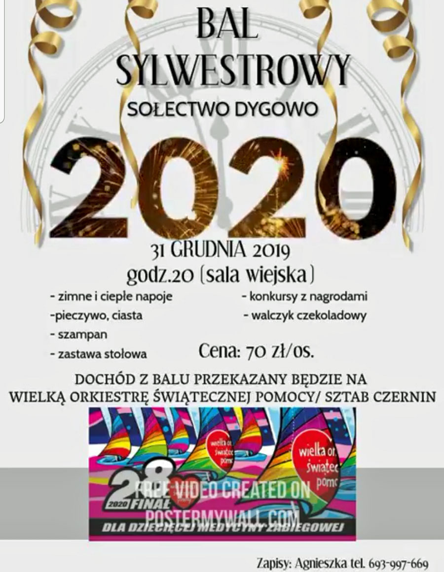 31 grudnia, sołectwo Dygowo (sala wiejska), Bal Sylwestrowy, godz. 20, bilety 70 zł (dochód zostanie przekazany na WOŚP) Post published:22 grudnia 2019 Post category:Nie przegap Post comments:0 Komentarzy Read more articles Previous PostBetlejemskie Światło Pokoju w Bazylice. Będzie je można odpalić i zabrać do domu Następny wpis31 grudnia, miejski Sylwester, plac przy molo, start o godz. 20, wstęp wolny Dodaj komentarz Anuluj pisanie odpowiedziCommentEnter your name or username to comment Enter your email address to comment Enter your website URL (optional) Zapamiętaj moje dane w tej przeglądarce podczas pisania kolejnych komentarzy. Δ