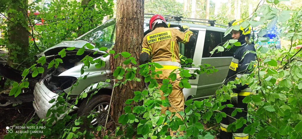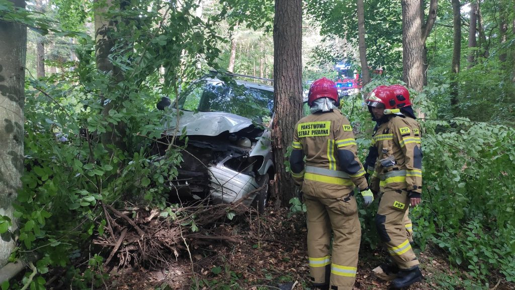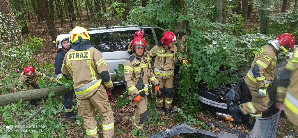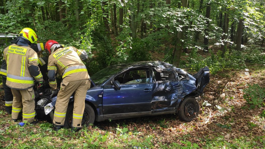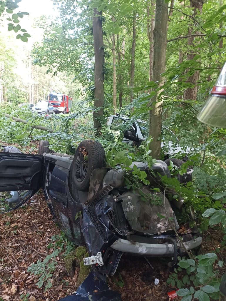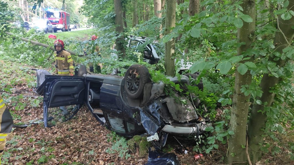 -Po przyjeździe na miejsce zdarzenia i przeprowadzeniu rozpoznania stwierdziliśmy, że jeden z pojazdów leży na dachu, a drugi uderzył w drzewo – relacjonują strażacy – Łącznie pojazdami podróżowały 4 osoby i wszystkie opuściły pojazdy o własnych siłach przed przybyciem służb.