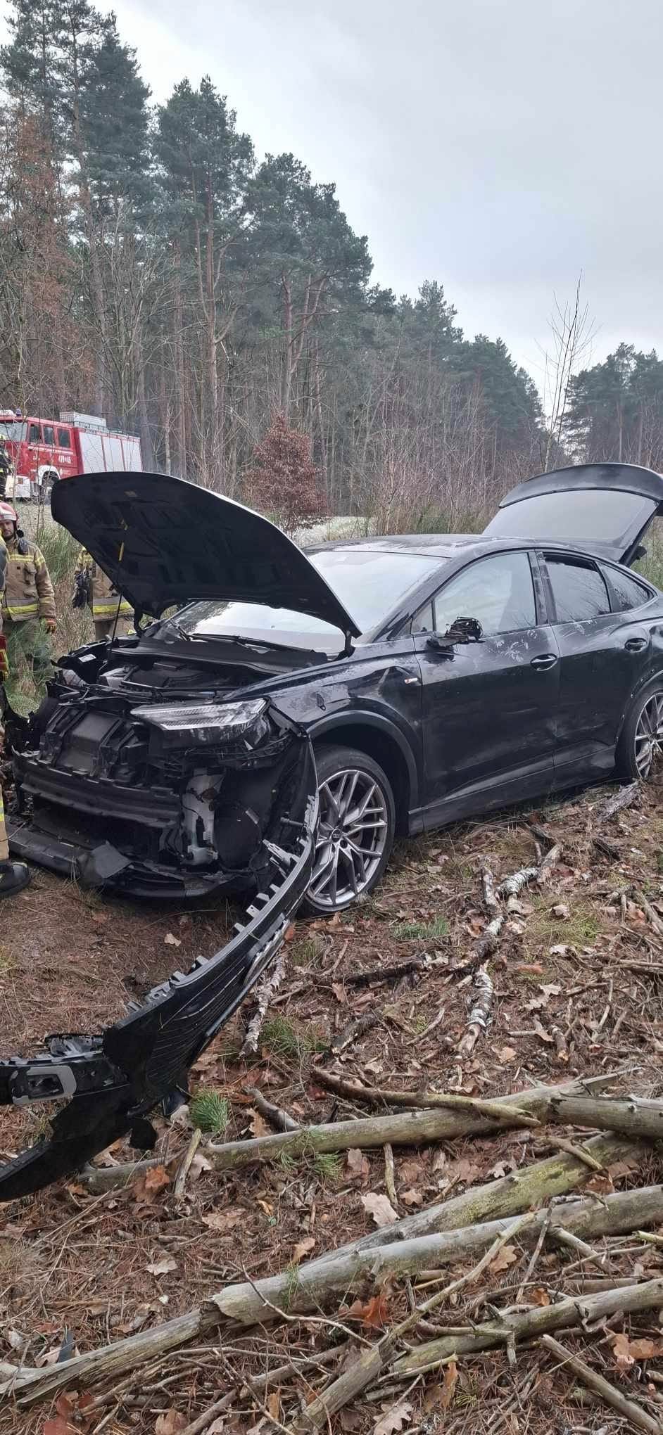 Na drodze powiatowej do Charzyna audi wypadło z drogi i uderzyło w drzewo. Samochodem jechała kobieta z synem.