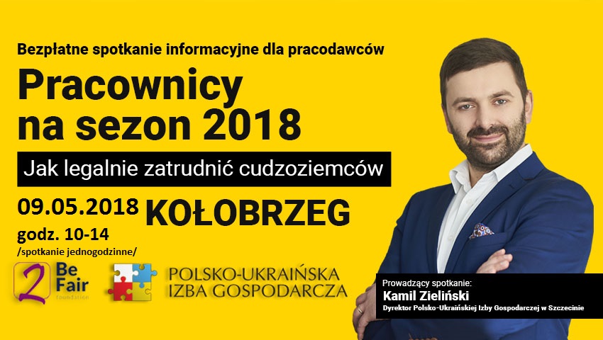 Spotkanie poprowadzi Kamil Zieliński – Dyrektor Polsko-Ukraińskiej Izby Gospodarczej w Szczecinie, który poinformuje o legalności zatrudnienia i pobytu cudzoziemców na obszarze województwa zachodniopomorskiego, a także w praktyczny sposób podzieli się własnym kilkunastoletnim doświadczeniem, zdobytym na polskim rynku pracy podczas prowadzenia własnej agencji pracy.